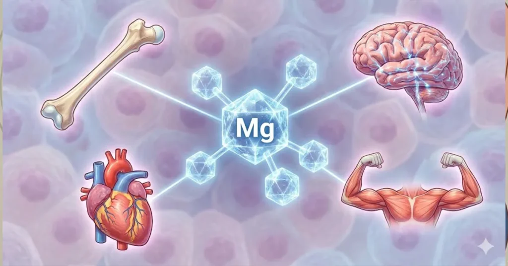 منیزیم چهارمین ماده معدنی فراوان در بدن انسان است که به عنوان یک کاتالیزور حیاتی در بیش از ۳۰۰ واکنش بیوشیمیایی، از جمله ساخت پروتئین، عملکرد سیستم عصبی، کنترل قند خون و تنظیم فشار خون نقش کلیدی ایفا میکند. حدود ۶۰ درصد از کل منیزیم بدن در استخوانها ذخیره شده و باقیمانده آن در ماهیچهها، بافتهای نرم و مایعات بدن از جمله خون قرار دارد که نشاندهنده اهمیت استراتژیک این عنصر برای سلامت عمومی است.