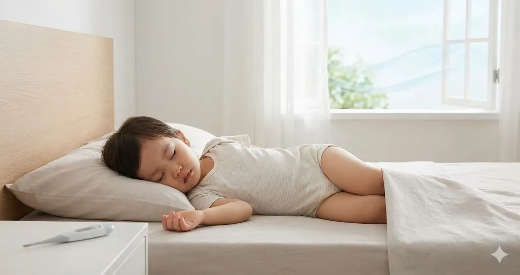 - دمای ایدهآل: دمای اتاق را در حدود ۲۱ تا ۲۳ درجه سانتیگراد نگه دارید. اگر اتاق خیلی گرم است، با باز کردن پنجره یا استفاده از تهویه (بدون اینکه باد مستقیم به کودک بخورد)، دما را تعدیل کنید.