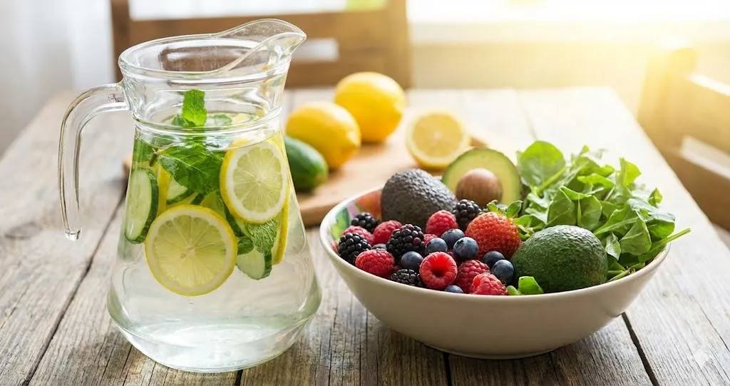 آب مایه حیات سلول‌های پوستی است. وقتی بدن کم‌آب می‌شود، پوست خاصیت ارتجاعی خود را از دست داده و چروک‌ها زودتر نمایان می‌شوند. سعی کنید روزانه حداقل ۸ لیوان مایعات بنوشید. آب خالص بهترین گزینه است، اما دمنوش‌های گیاهی نیز مفید هستند.